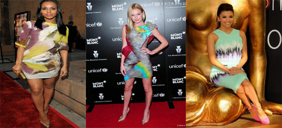 - la belle eva longoria : robe vert amande et imprimé arty